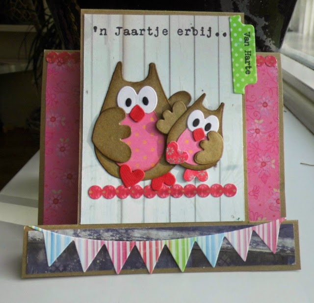 Is het geen schatje, dit lieve uiltje? Erg leuk om er een verjaardagskaart mee te maken.